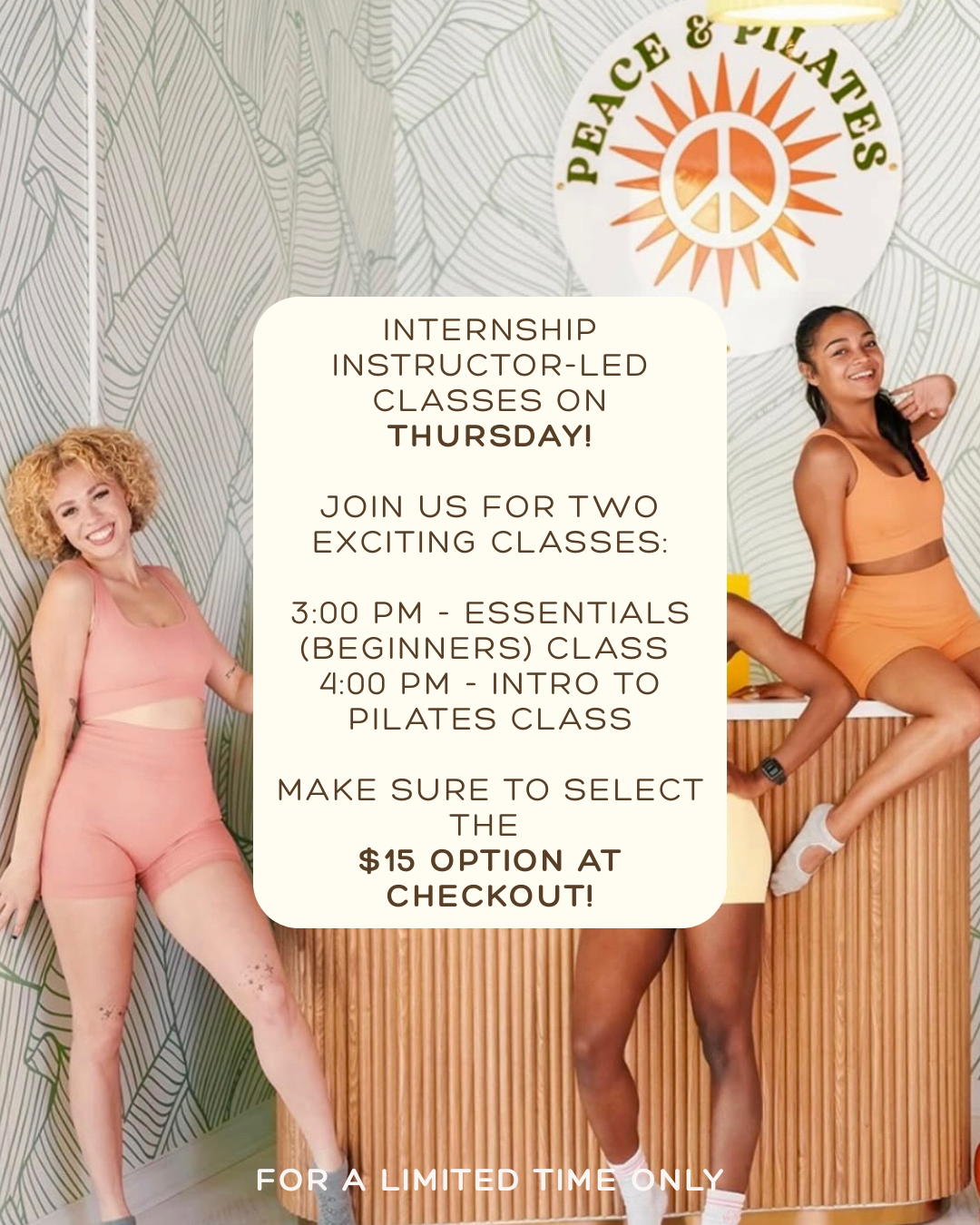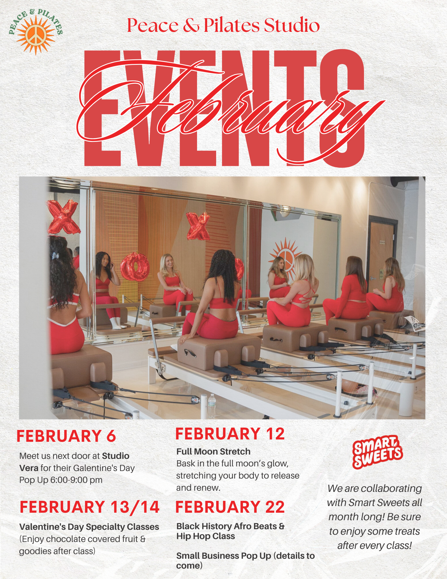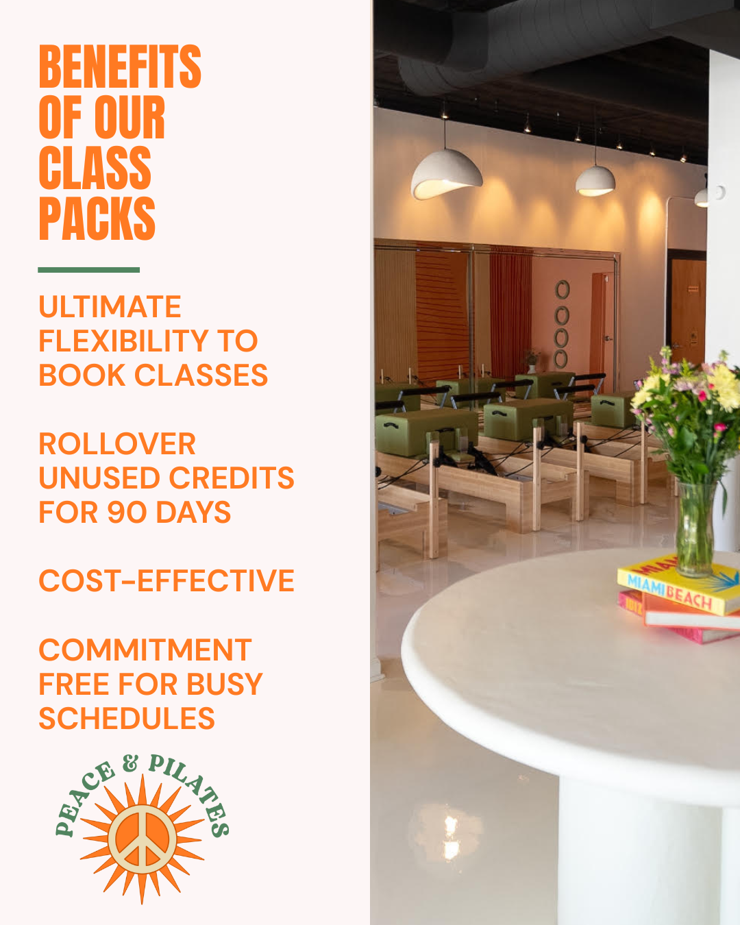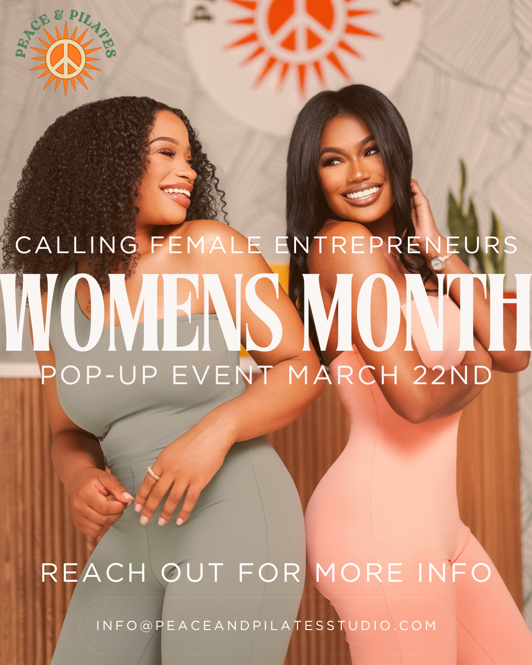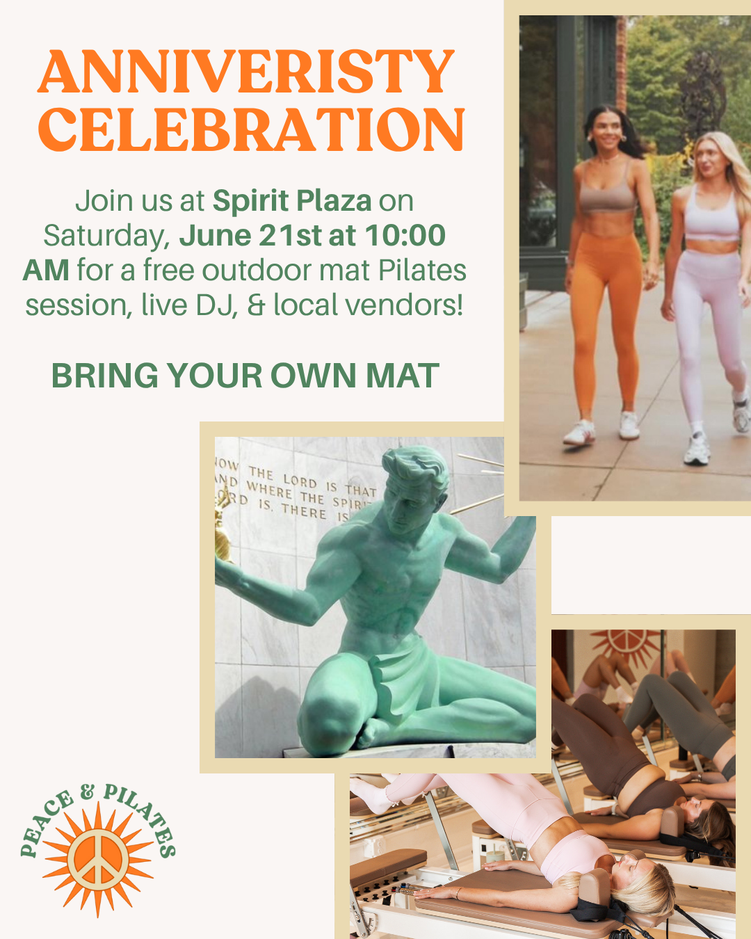 Explore a curated gallery of class visuals, studio campaigns, digital flyers, social content, and promotional materials designed for Peace & Pilates.
