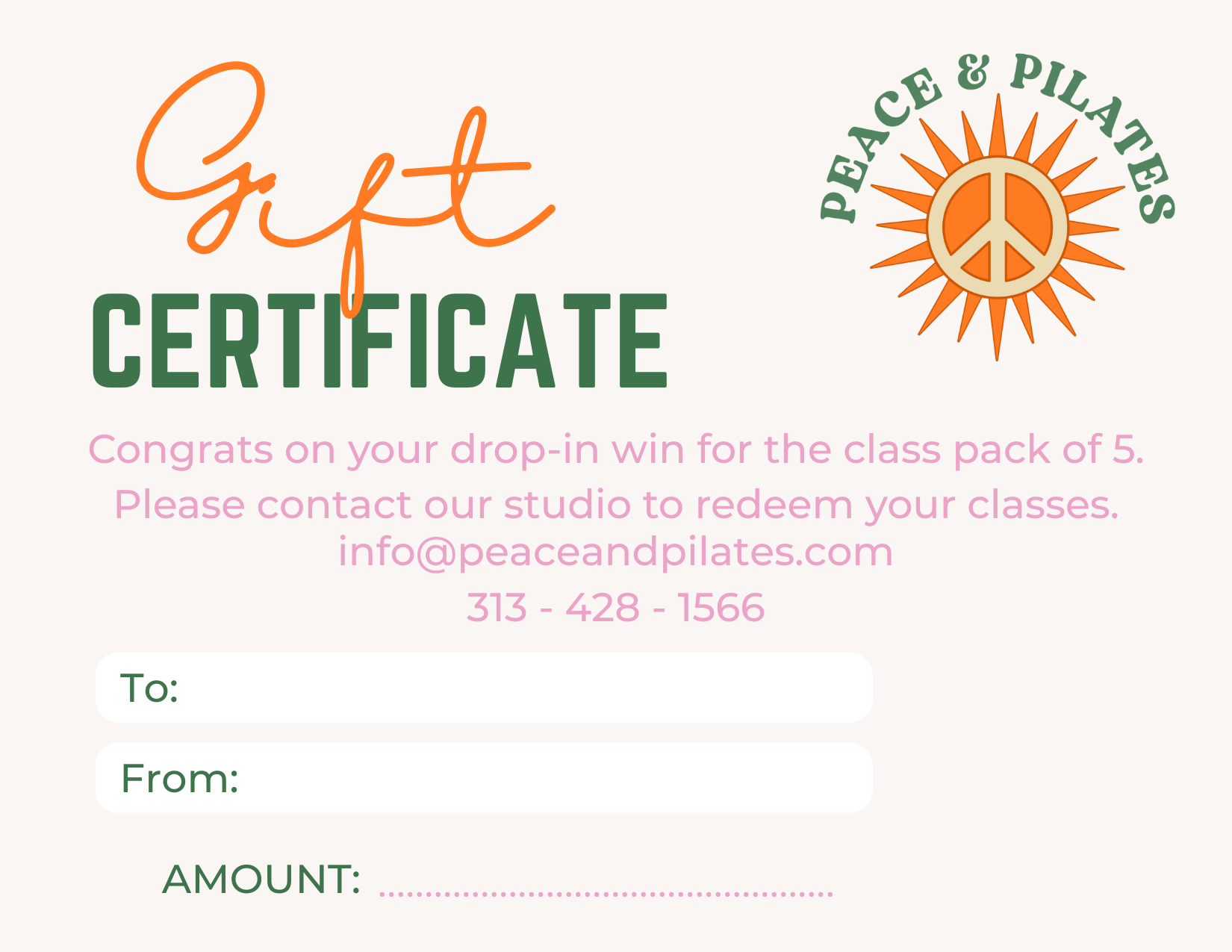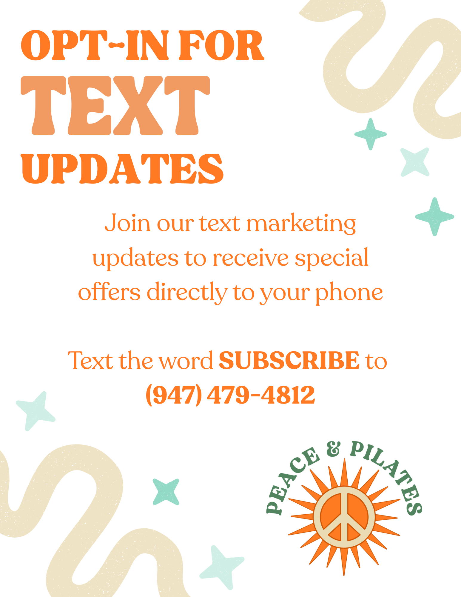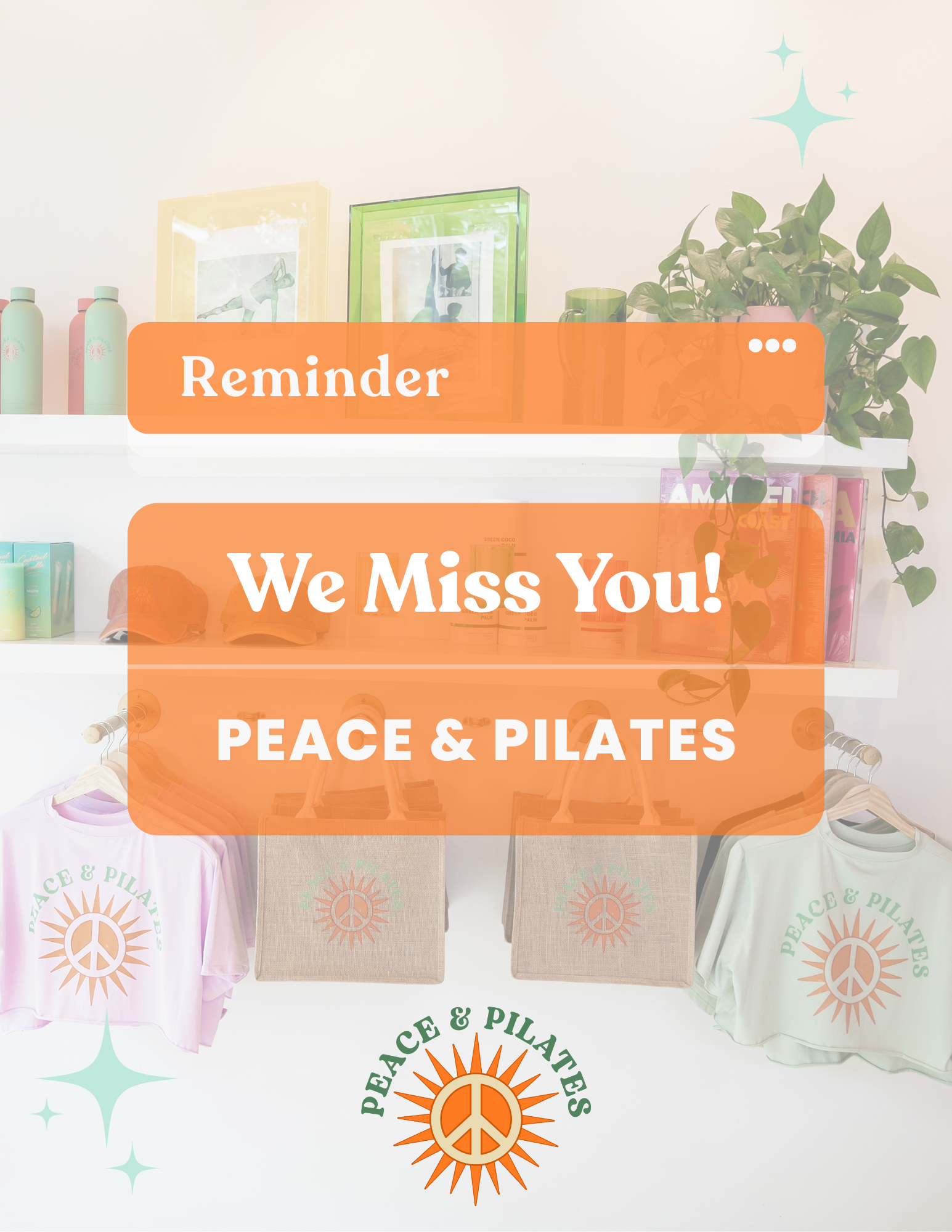 This section highlights creative materials developed for Peace & Pilates — including digital campaigns, email and SMS marketing, social media content, event promotions, and branded studio collateral.